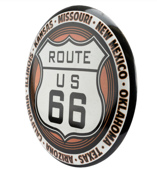 Large Curved Tin Button - Route 66